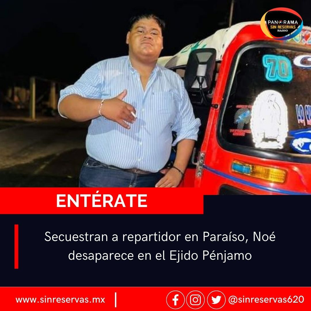#Enterate | Noé, conocido como Marianela, fue presuntamente secuestrado la noche de ayer en el Ejido Pénjamo, Sección Chiltepec de Paraíso. Ocurrió alrededor de las 11 PM cuando sujetos desconocidos lo llevaron, preocupando a la comunidad. Noé trabajó como conductor de pochimovil y actualmente como repartidor.
