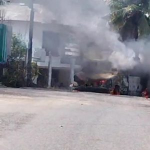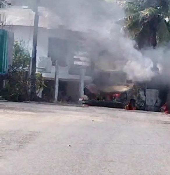 Una Urban tipo van se incendió cerca de la escalera conocida como el Mango en la Villa Benito Juárez. Se desconocen las causas del fuego, si fue por un corto circuito o intencional. Protección Civil logró controlar el incendio.