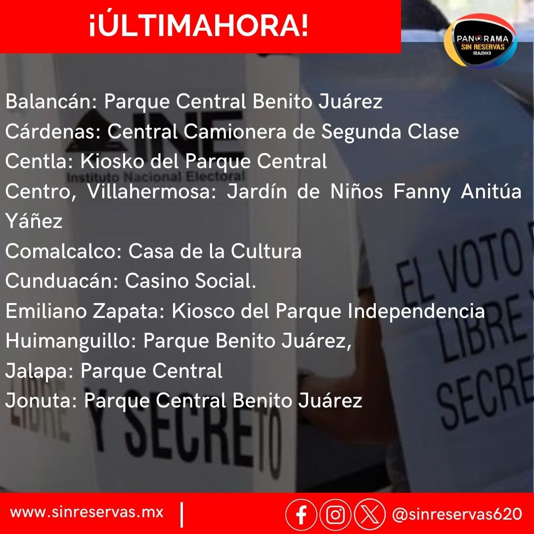A continuación, se detallan algunas de las ubicaciones de las casillas especiales en Tabasco para las próximas elecciones. Si necesitas votar fuera de tu sección electoral, estas casillas estarán disponibles:
