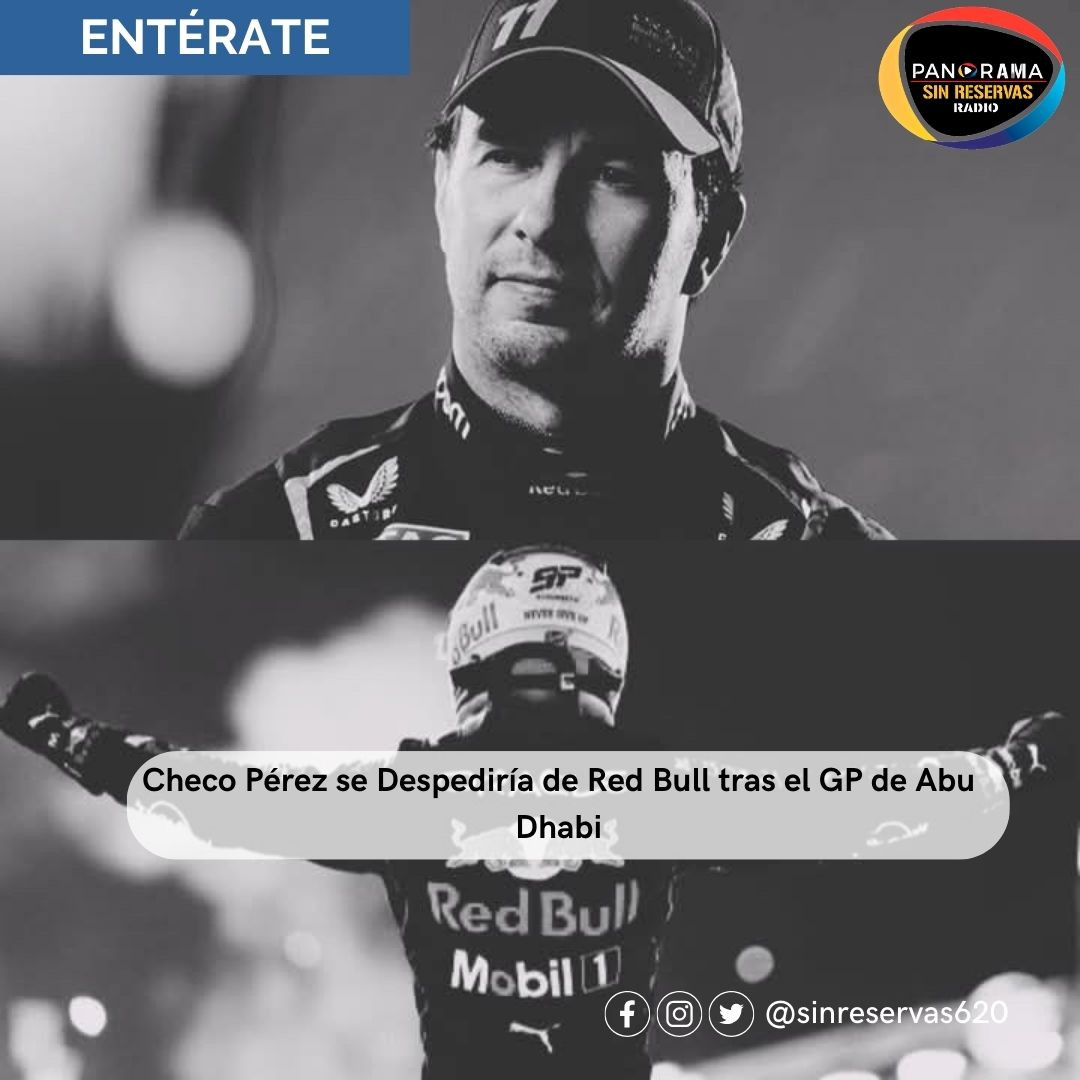 #Entèrate | Según reportes de diversos medios, Sergio “Checo” Pérez dejará Red Bull al final de la temporada 2024. El Gran Premio de Abu Dhabi sería su última participación con la escudería, cerrando una etapa marcada por éxitos y desafíos.