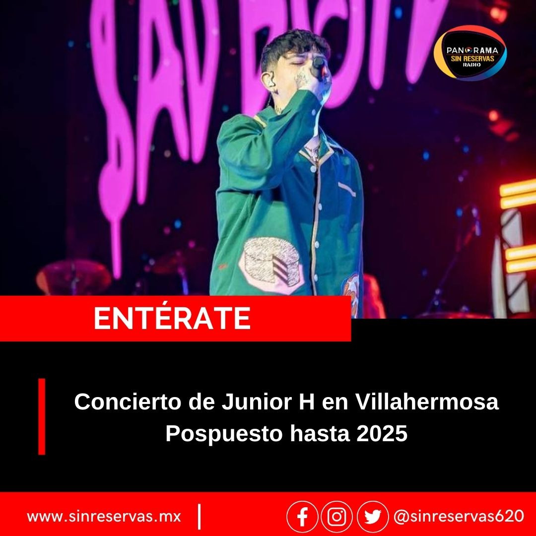 #Entèrate | El concierto de Junior H, previsto para este 7 de diciembre en Villahermosa, será pospuesto a una nueva fecha entre enero y marzo de 2025. Los boletos ya comprados mantendrán su validez, según informaron los organizadores.