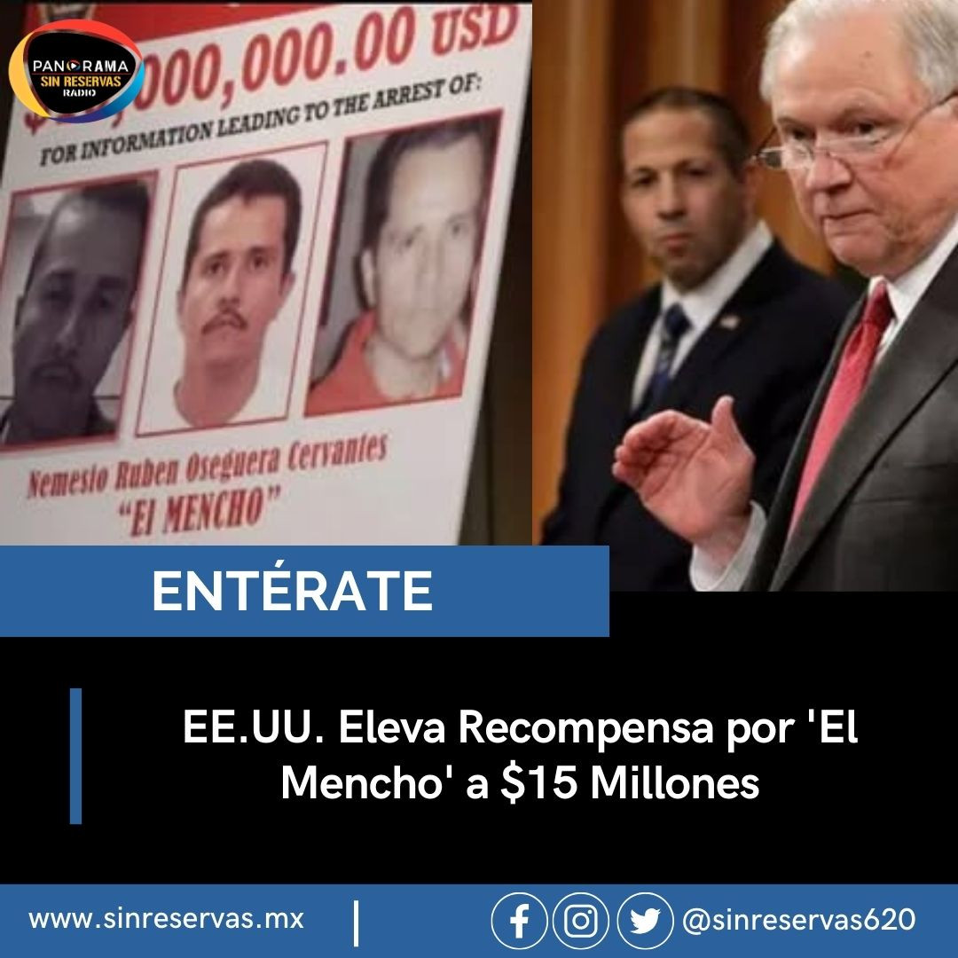 #Entérate | El Departamento de Estado de Estados Unidos incrementó la recompensa a $15 millones por información que lleve al arresto de Nemesio Oseguera Cervantes, alias ‘El Mencho’, líder del CJNG y uno de los hombres más buscados.