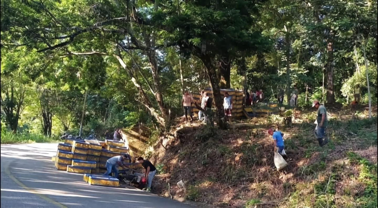 Un camión cargado con pollos sufrió un accidente en la carretera Salto de Agua-Tila, al perder el control debido al peso de la carga y caer en una cuneta. A pesar de la presencia policial, decenas de personas aprovecharon la situación para robar los pollos, mientras que el conductor y su equipo no se opusieron por miedo a ser agredidos.