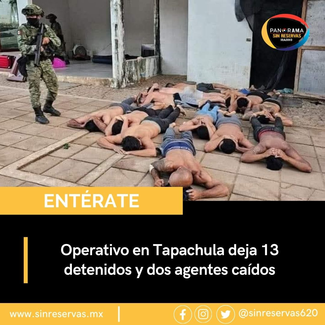Un operativo conjunto en Tapachula, Chiapas, resultó en la detención de 13 presuntos integrantes de una banda delictiva, con el aseguramiento de 16 armas largas y otros materiales. Lamentablemente, dos elementos de seguridad, un cabo de la SEDENA y un agente de la PDI, perdieron la vida durante el enfrentamiento.