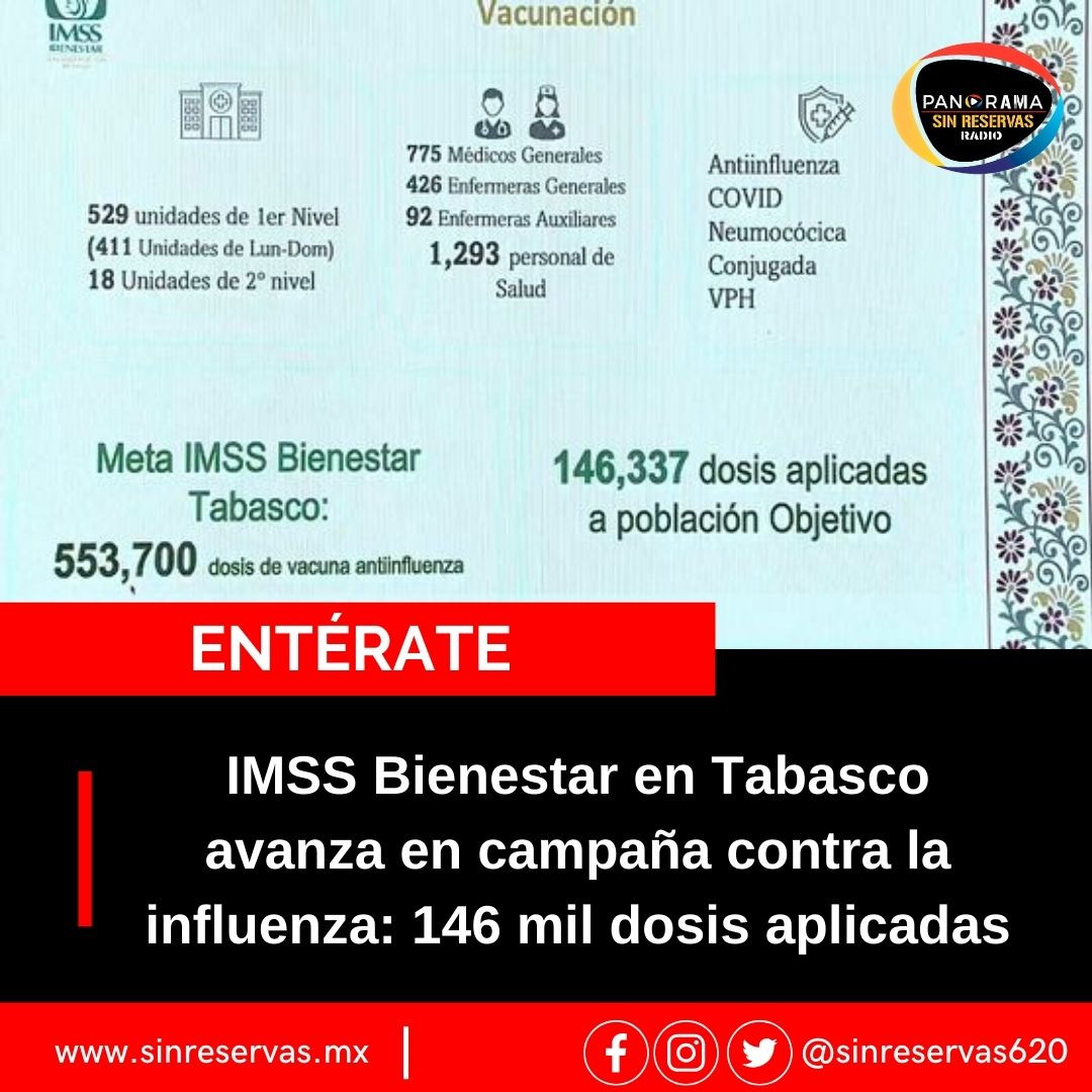 #Entèrate | El Coordinador del IMSS Bienestar en Tabasco, Manuel Pérez Lanz, anunció que ya se han aplicado 146,337 dosis de la vacuna contra la influenza. La meta del programa es llegar a 553,700 dosis para proteger a la población durante la temporada invernal.