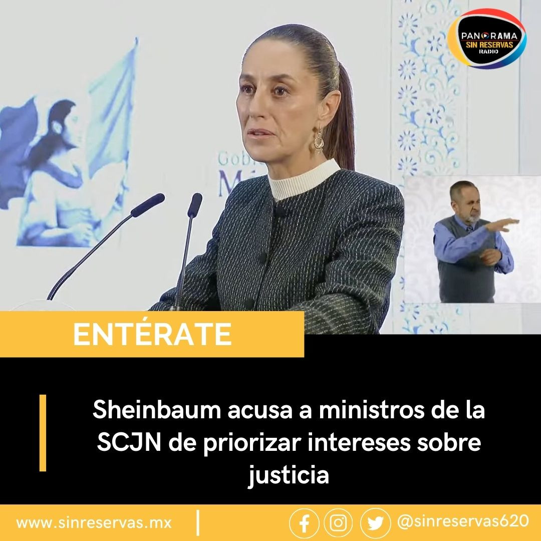 #Entèrate | La presidenta Claudia Sheinbaum señaló que ciertos ministros de la Suprema Corte están tomando decisiones en favor de intereses particulares y no de carácter jurídico. Aseguró que, pese a las provocaciones, no se buscará enjuiciar a los miembros del máximo tribunal.