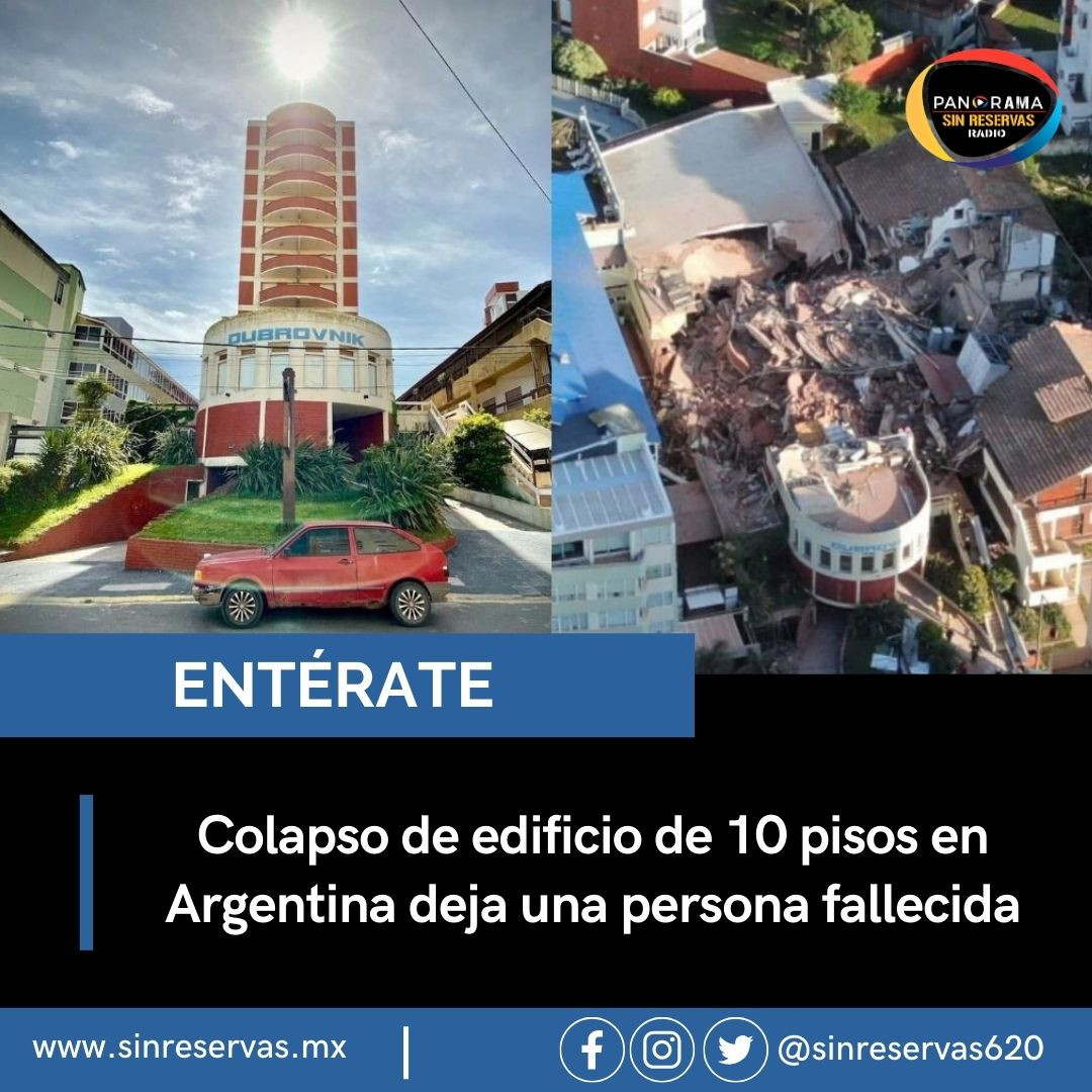 #Entèrate | Un edificio de 10 pisos se desplomó en Argentina, dejando al menos una persona fallecida según los primeros reportes. Equipos de emergencia se encuentran en el lugar realizando labores de búsqueda y rescate, mientras se evalúan los daños y se descarta la presencia de más personas atrapadas. Las autoridades han iniciado una investi…Leer más