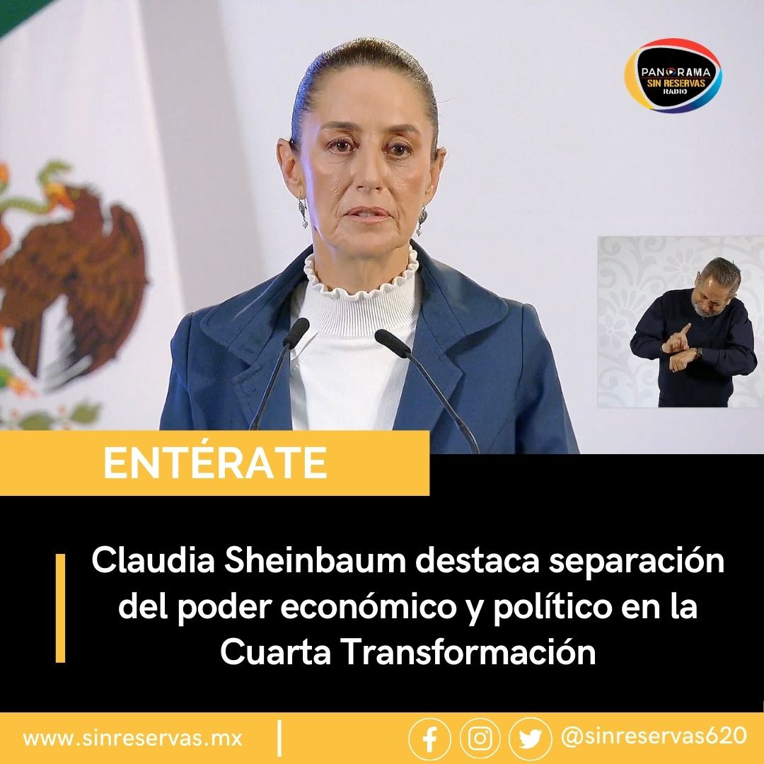 #Entèrate | La presidenta Claudia Sheinbaum Pardo afirmó que la Cuarta Transformación separa el poder económico del político, asegurando que el poder político está al servicio del pueblo. Además, subrayó que el estado de derecho debe garantizar acceso igualitario a la justicia para todos los ciudadanos. “El voto es el mismo, desde la persona m…Leer más