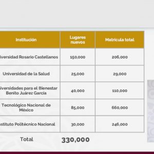 #Entérate | La presidenta Claudia Sheinbaum Pardo informó que se crearán 330 mil nuevos espacios educativos para jóvenes interesados en cursar una licenciatura en México. Esta medida busca ampliar las oportunidades de educación superior en todo el país y fortalecer el acceso al conocimiento.