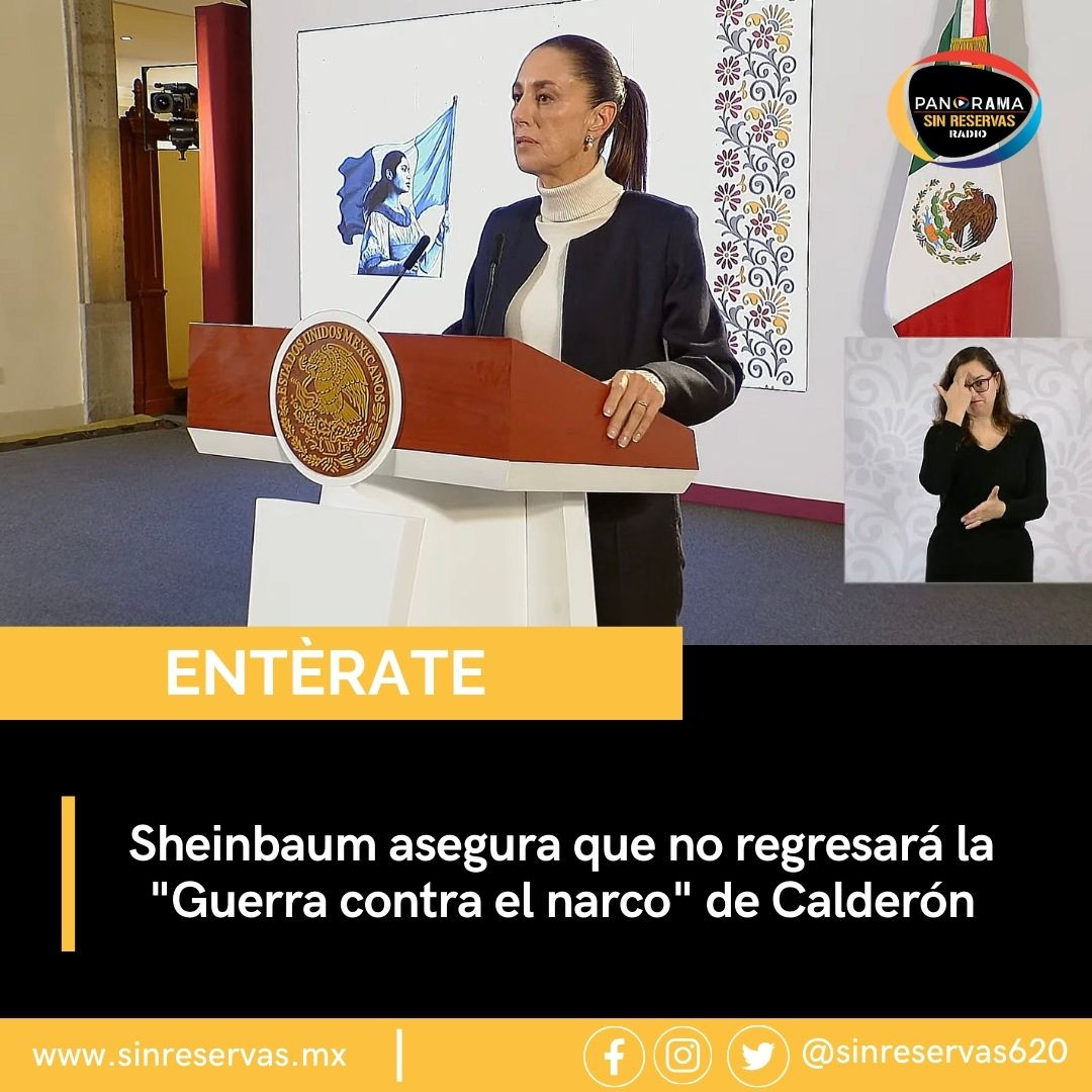 La presidenta Claudia Sheinbaum Pardo afirmó que no retomará la “Guerra contra el narco” implementada durante el gobierno de Felipe Calderón. En cambio, se apegará a la estrategia de seguridad de cuatro ejes promovida por el actual gobierno de México, enfocada en abordar las causas estructurales de la violencia y en la coordinación entre insti…Leer más