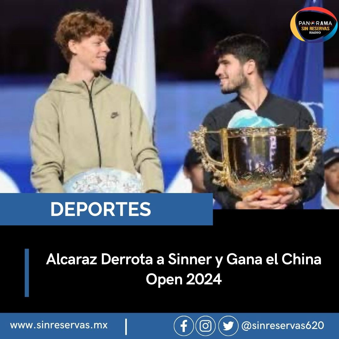 #Deportes | El tenista Carlos Alcaraz se consagró campeón del China Open 2024 al vencer a Jannik Sinner en la final, marcando la primera vez que el español derrota al italiano en una final. Con esta victoria, Alcaraz añade un importante título a su carrera en una de las competiciones más prestigiosas del calendario tenístico.