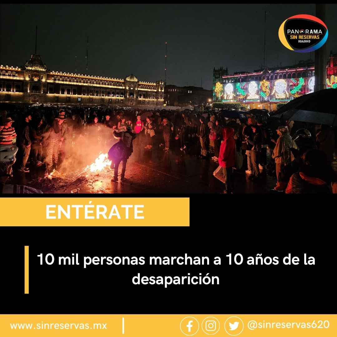 Alrededor de 10 mil personas participaron en una marcha en la Ciudad de México para conmemorar el décimo aniversario de la desaparición de los 43 estudiantes de Ayotzinapa.