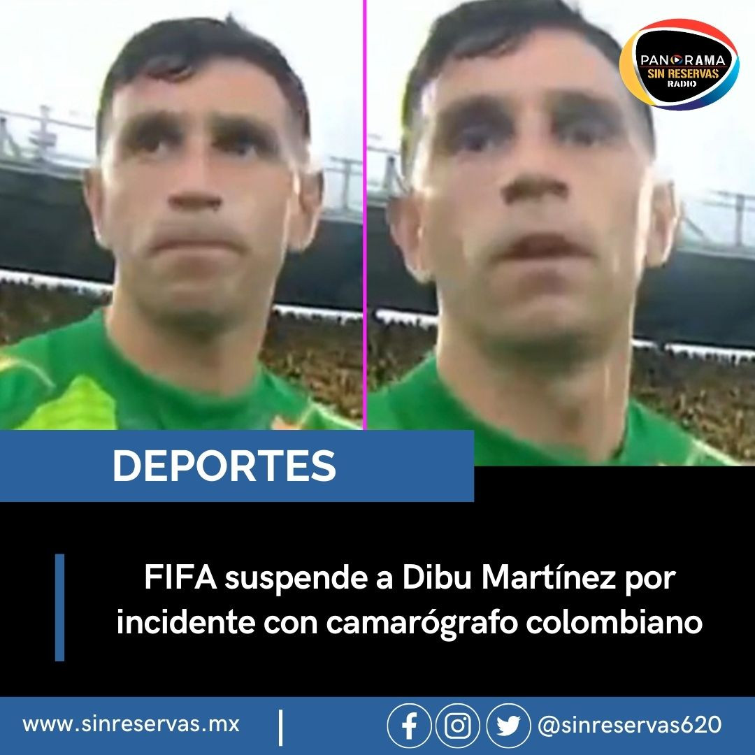 #Deportes | La FIFA sancionó a Dibu Martínez, arquero de la Selección Argentina, con dos partidos de suspensión. Esto se debe a su comportamiento durante un episodio con un camarógrafo colombiano y los gestos realizados tras la victoria en la Copa América.