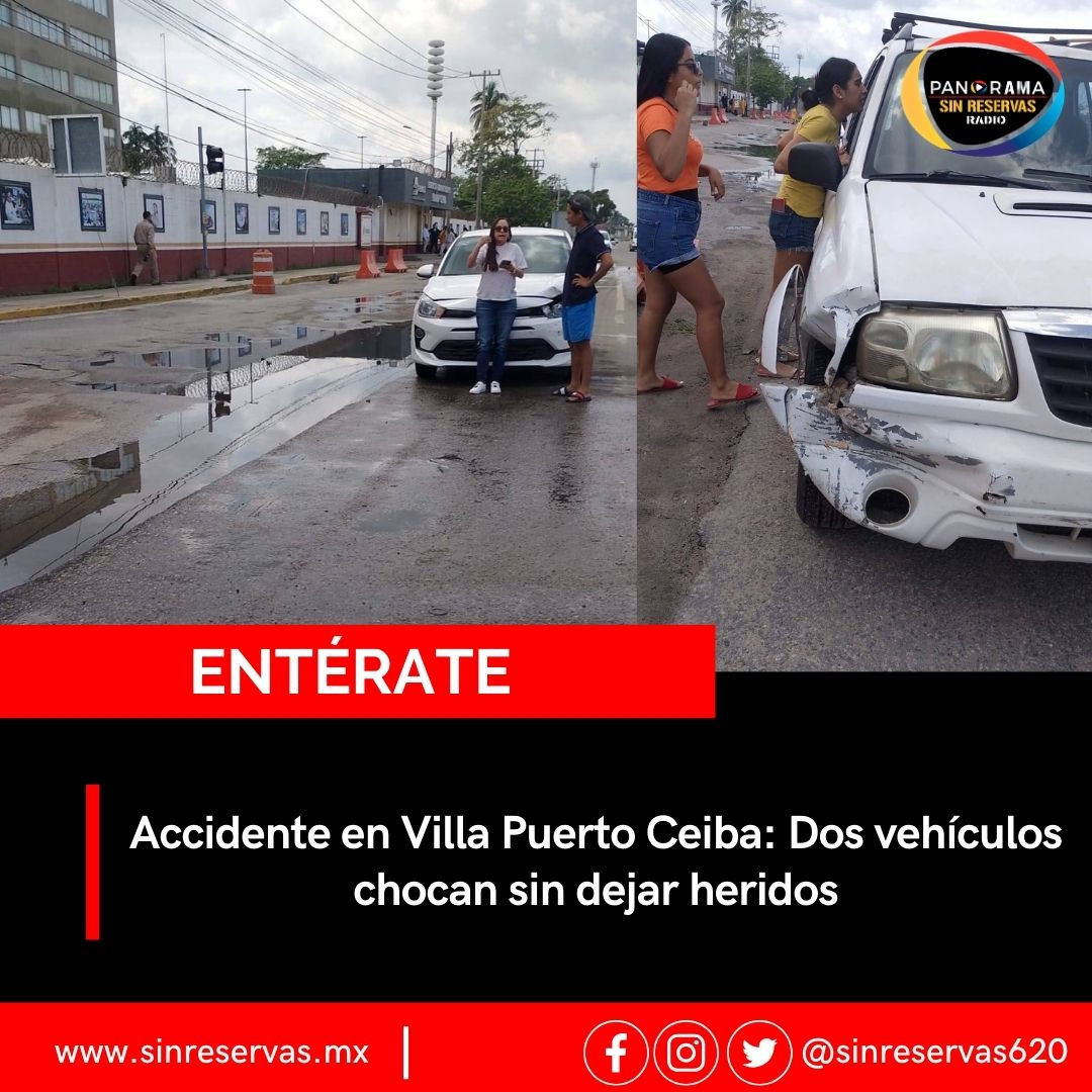 Este martes, en Villa Puerto Ceiba, se registró un accidente de tráfico frente al edificio administrativo de Kaam Ceiba. Dos vehículos colisionaron, pero afortunadamente no se reportaron heridos, únicamente daños materiales. Las autoridades ya están atendiendo el incidente en la zona.
