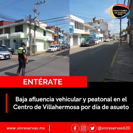 #Entérate | Con motivo del día de descanso, las calles cercanas a la Zona Centro de #Villahermosa presentan muy poca actividad, con escasa presencia de vehículos y peatones.