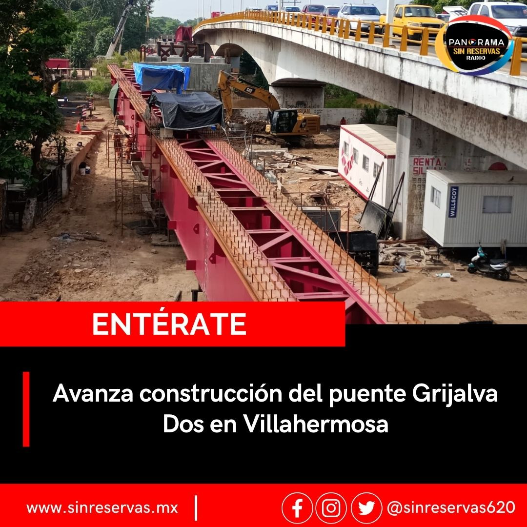 #Entérate | Avanzan significativamente las obras del puente vehicular Grijalva Dos, ubicado junto al actual en la colonia Gaviotas, #Villahermosa. Solo restan dos estructuras de hierro por colocar en el centro del río Grijalva para finalizar esta etapa del proyecto.