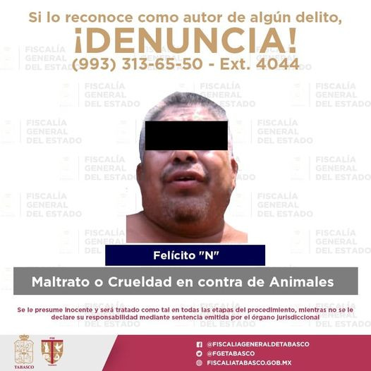 #Entérate | La Fiscalía General del Estado (FGE) de Tabasco detuvo a Felícito “N” por el delito de m4ltr4to animal en #Jalapa. La orden de aprehensión se basó en la denuncia por la mu3rte de una perrita pit-bull, ocurrida el 29 de agosto, cuando el imputado ingresó al domicilio de la dueña y la atacó con un machete.