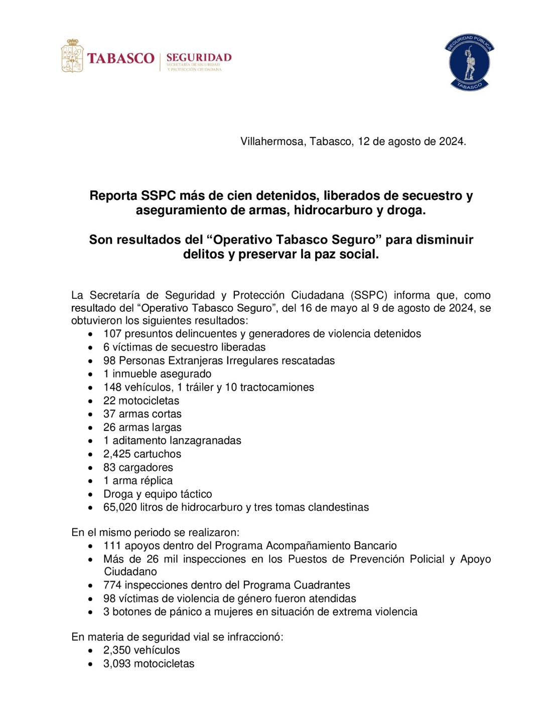 #Entérate | La (SSPC) reportó la detención de más de 100 personas, la liberación de varios secuestrados, y el aseguramiento de armas, hidrocarburos, y estupefacientes en un operativo reciente. Las acciones forman parte de los esfuerzos continuos para combatir la delincuencia.